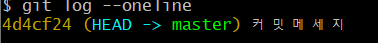 현재 까지 등록한 커밋 메세지와 해쉬코드가 모드 나타난다.