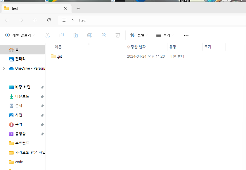 .git 이라는 파일이 현재 실행되고 있는 위치에서 생기는것을 알수 있다.